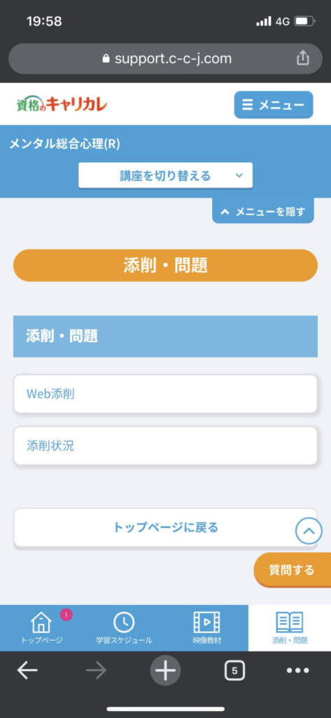 ここでは1番右下の「添削・問題」をタップして、添削課題を受けましょう。